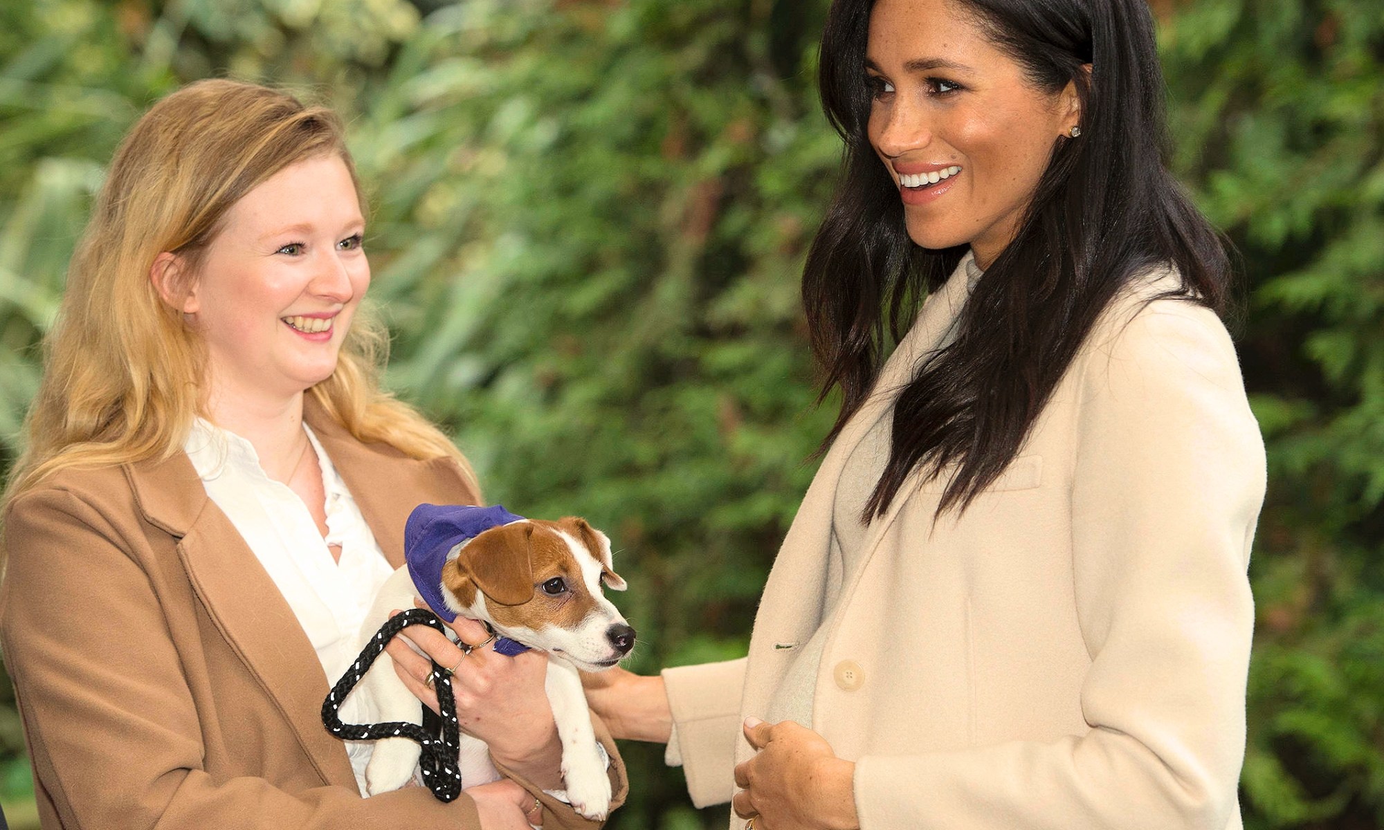 Despite being almost tempted to take home a rescue dog herself, she politely declined, explaining that with she and Prince Harry having already adopted a black Labrador last summer and their first baby on the way, they have their hands very full!