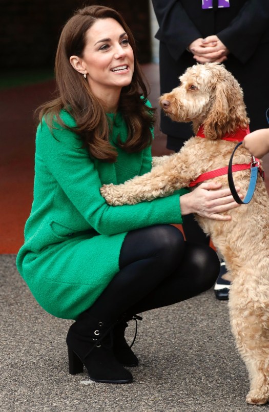 During her visit, the Duchess of Cambridge met with the young students, parents, staff and Herbie, the school dog.