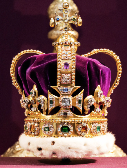 St. Edward’s Crown is made of 22 carat gold and contains 6 sapphires, 12 rubies and 345 aquamarines. It was made by the royal jeweller, Robert Vyner, in 1661 on the orders of King Charles II.