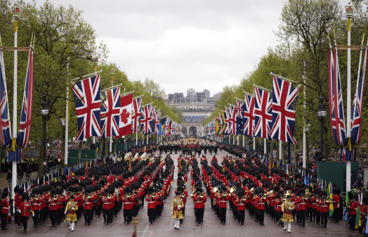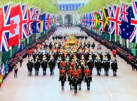At 10:20am, the celebrations started with a procession of King Charles and Queen Camilla in the Diamond Jubilee State Coach, from Buckingham Palace to Westminster Abbey.