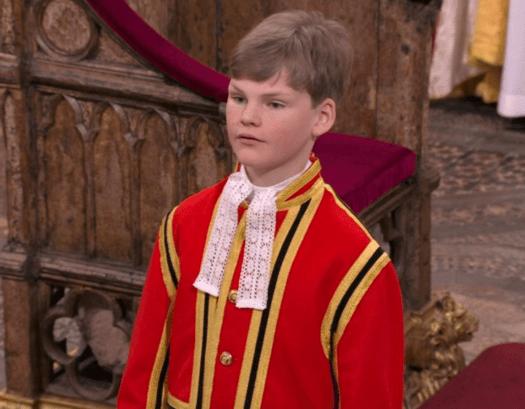 The King’s grandson, Prince George of Wales, was among the pages of honour, alongside Camilla’s grandchildren, Lola, Eliza, Gus, Louis and Freddy.