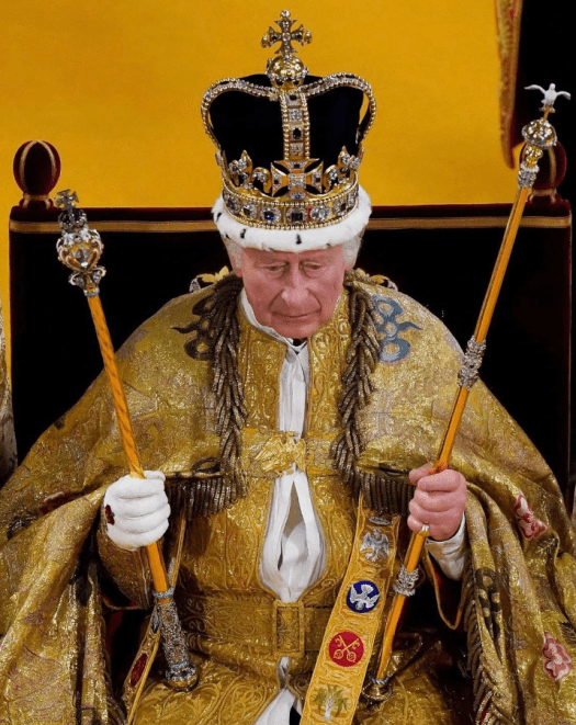 The King is dressed in symbolic ‘vestments’, and presented with items of Regalia, each a visible reminder of his role and his responsibility to God. These include: